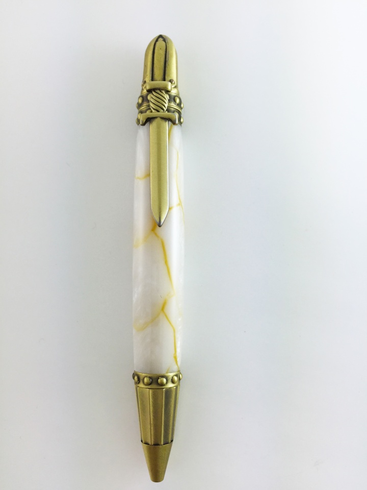 Did this Knights Armor in antique brass with a Mystical Quake with Gold Fracture blank. I thought it looked nice.