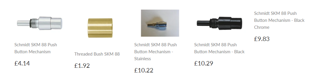 The Schmidt SKM-88 is a great mechanism, but it is kind of ugly. Maybe I should call it boring instead of ugly, but let's face it, there are more attractive options out there. They could at least offer some different finishes? There's a black one, but it's not really readily available. Gold finishes are hard to match well, but brass shouldn't be that hard to do. Also, anodization is a thing. (To be fair, I have not tried the SKM-192) The picture below is linked to the site that I found the options on.