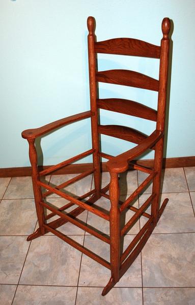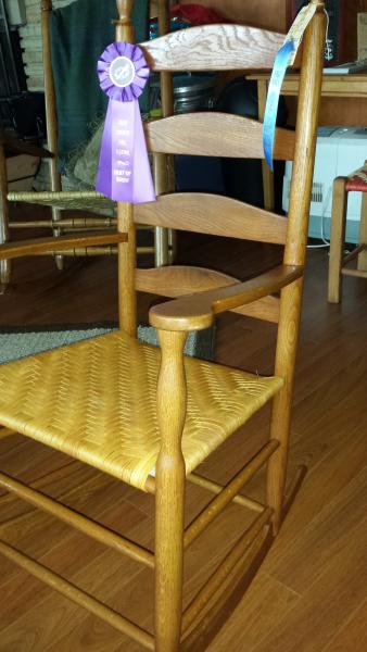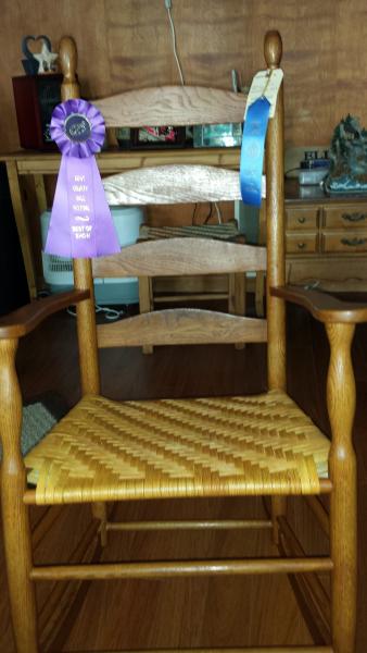 I made this Shaker style Ladder Back Rocking Chair with White Oak with the exception of the seat weaving which I did in a Herringbone pattern. Last week I entered it in the Dent County Fall Festival (Fair) and got a Blue Ribbon and "Best of Show" Ribbon. OK, so I'm braggin:biggrin:
