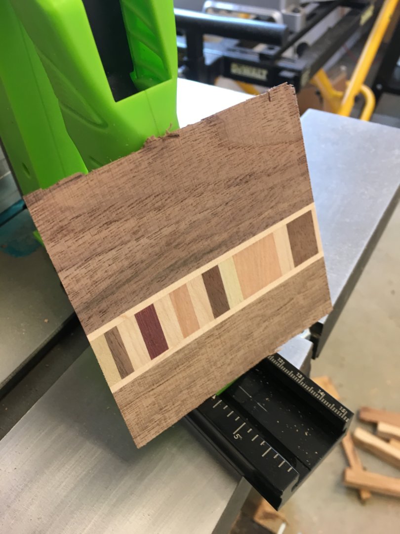 I can't say I was going slowly enough to avoid blade marks as I go from here to two or three passes on the drum sander. It is surprisingly smooth for such a thin cutoff.