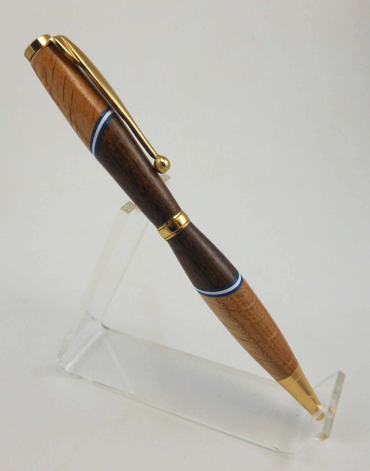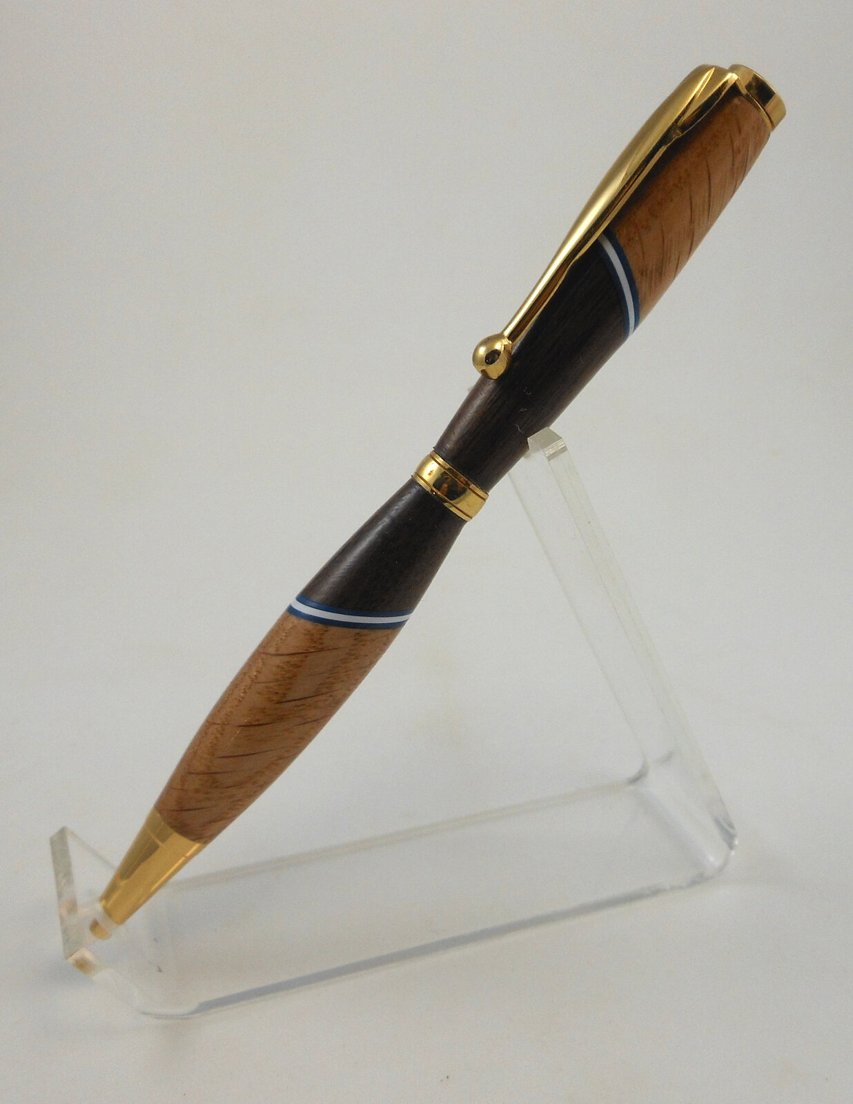 The laminate really makes a slim look really good, upgrades it, maybe you really don't need a 50$ kit. Well this is a slim made from a diagonal cut oak blank and walnut with plastic laminates. Next one I do I will have a acrylic center, but i want to use ca on the wood part. Can you use the ca on the acrylic? DSCN1288.JPGDSCN1290.JPG