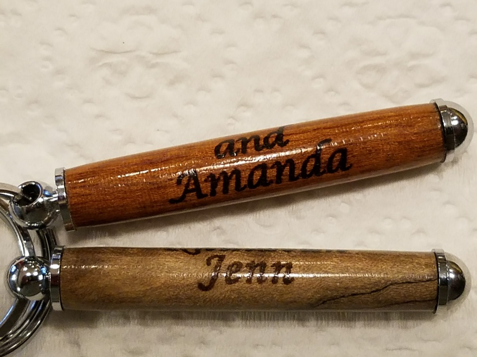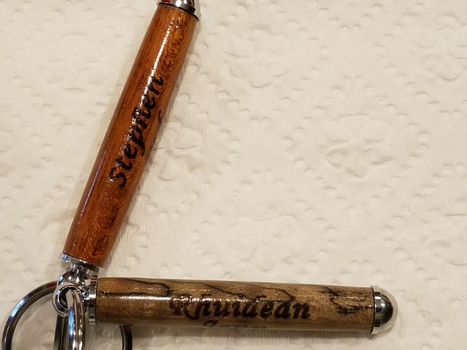 I took the plunge and bought one of the low powered laser engravers. Here are a couple of key chains I engraved for family members. I had some scrapes from slimline mistakes that I used to practice on. Then realized I could throw them on some key chains and salvage tubes which I've had laying around for ages. This is the result.