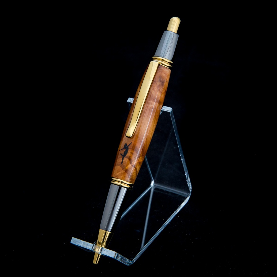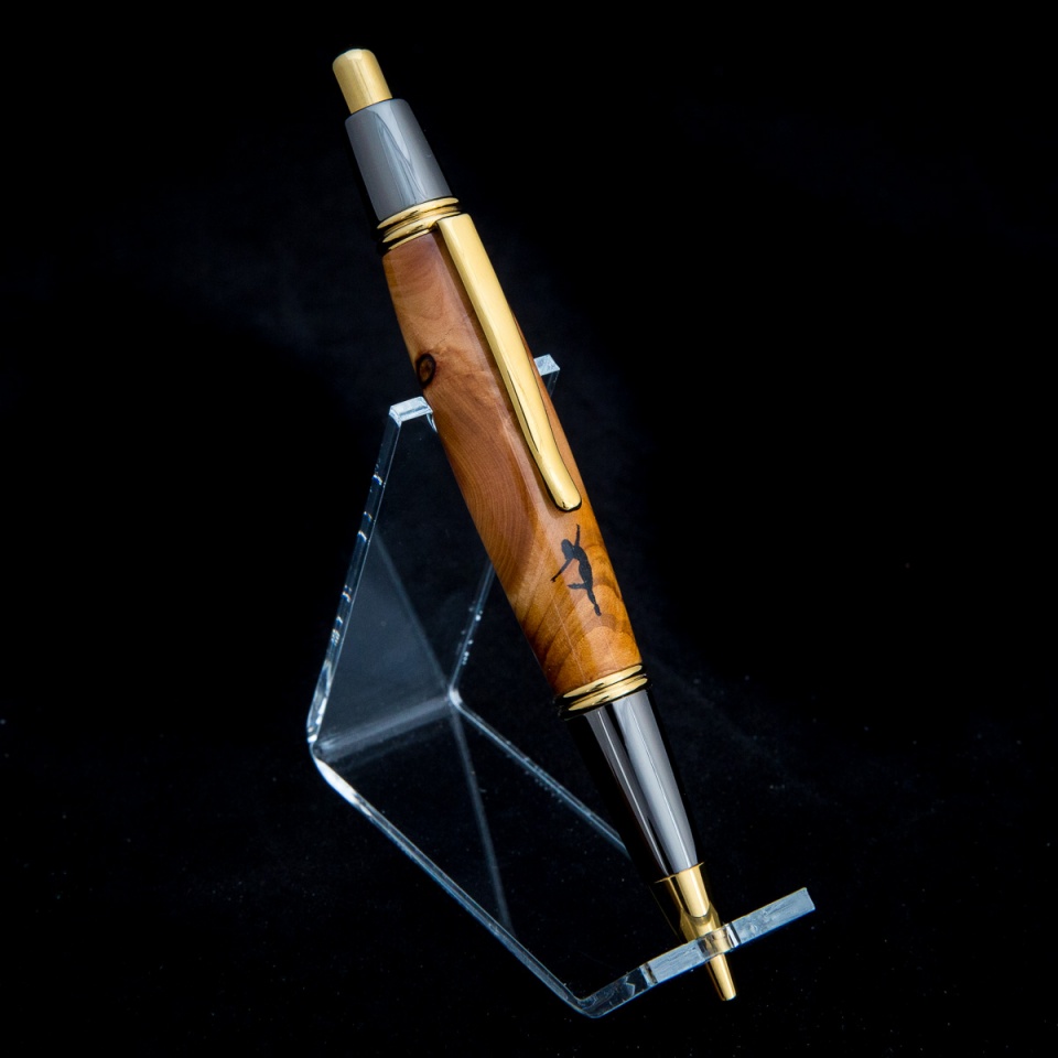 A gift for a dance instructor. Didn't think the laser carved deep enough to fill, so I just put several coats of CA on the whole pen to fill in the engraving. It was kind of an experiment, but I liked how it turned out.
