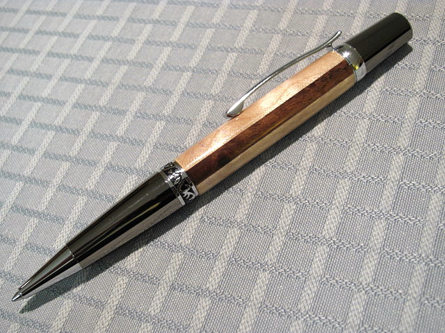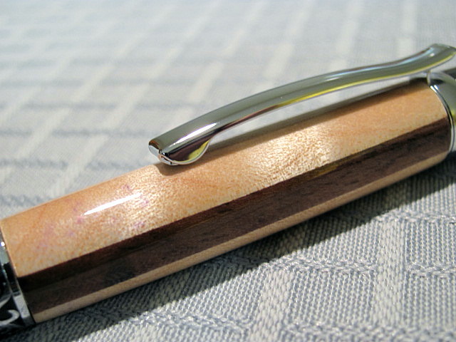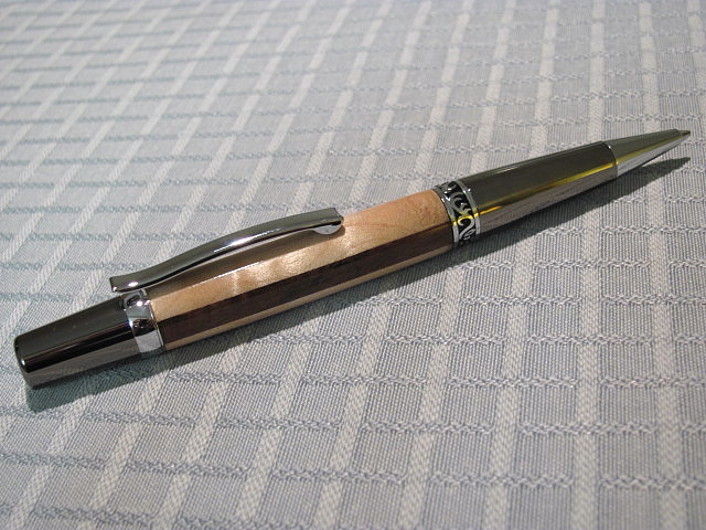 Here is how my last of my guitar wood pens turned out.I made this Sierra Elegant using Walnut between 2 pieces of nice Curly Maple.