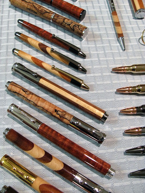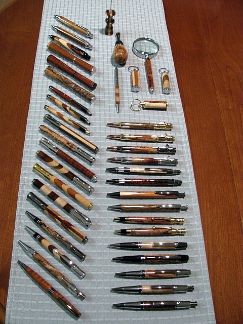Then I thought it would be neat to get a group shot of the pens that I made with this box of scraps,to show my friend what I made with the wood he gave me.It's taken me about two years to make these,I tried to come up with a nice variety to have something to offer to folks,should I be able to sell/gift them in the future.