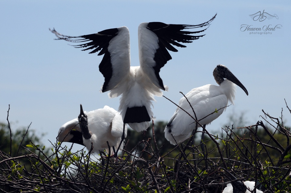 The egret has great breeding colors, and I really like the wingspread on the wood stork. Nice shots, Eric
