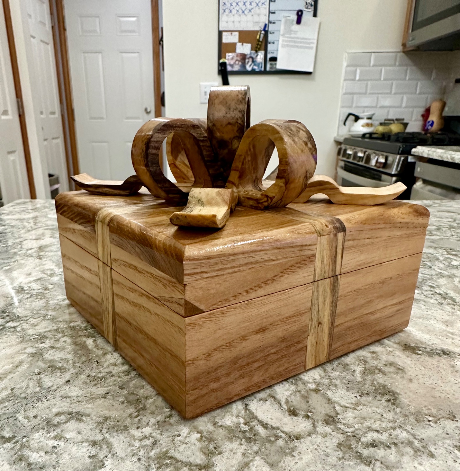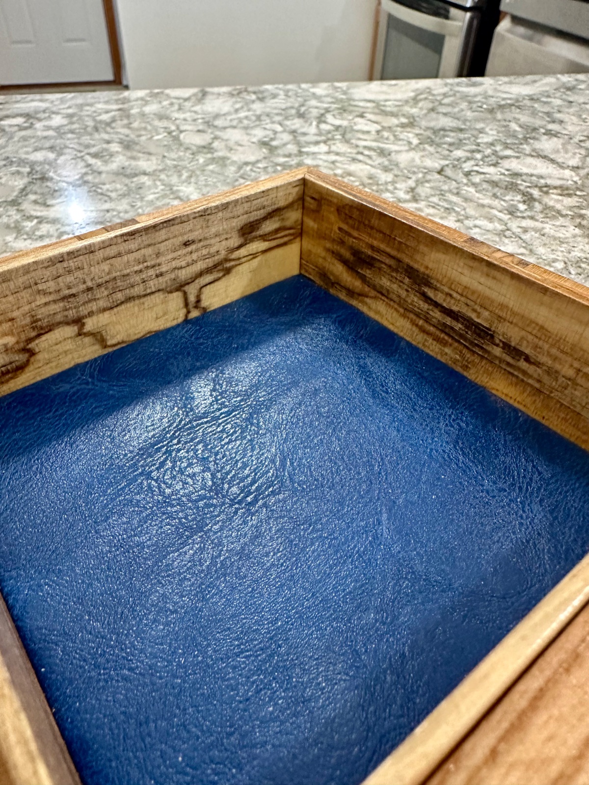 This one is white ash and spalted maple. The top and bottom are lined with faux blue leather. I used AI to generate the last picture.