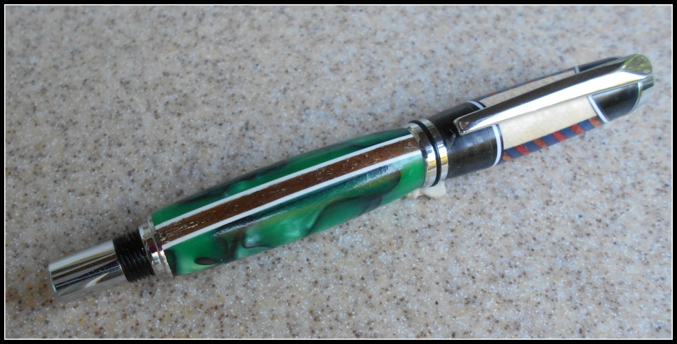 Bryguy Member Joined Jun 9, 2013 Messages 985 Location New Hampshire Aug 25, 2018 #1 This is a segmented pen with spectraply, resin, maple, African blackwood and black walnut. hope you like it! Attachments DSCN1100.jpg 174.1 KB · Views: 294 DSCN1098.jpg 156.8 KB · Views: 291 DSCN1099.jpg 182.5 KB · Views: 281