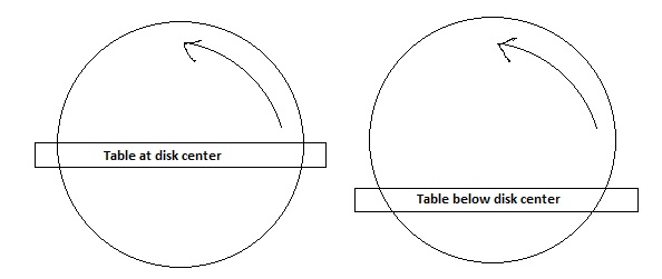 I was just referring to the location of the table top in reference to the disk center. And thus the effect it has on the way the piece is sanded.