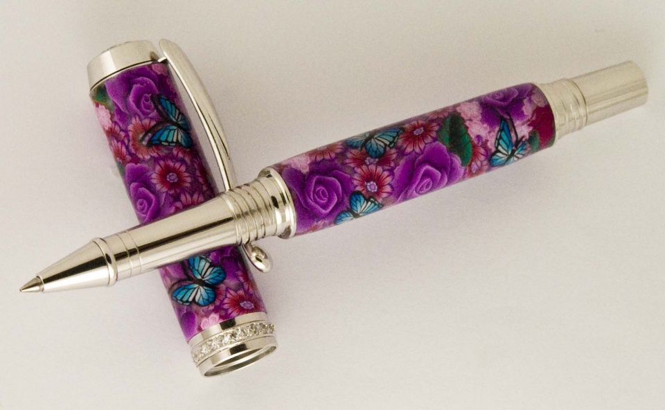 This is a Lavender Rose Venus Rollerball that I put together for my secretary. I used one of Toni's beautiful polymer clay blanks. My secretary