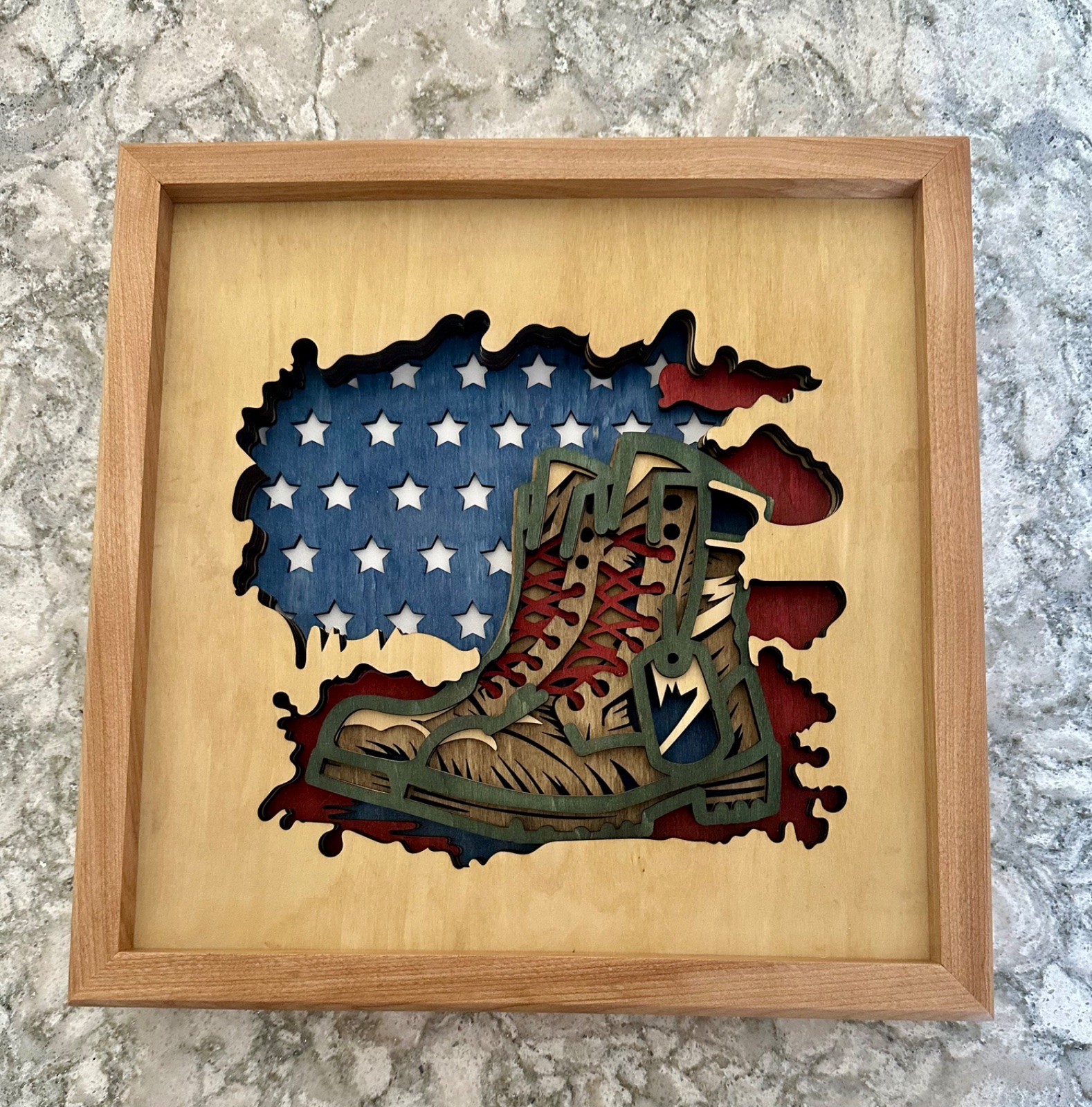 Luckily, for some reason. I enjoy making frames.Very Cool - kind of an intarsia kind of thing. I really like the one with the flag and boots! - Keep making those frames! - Dave