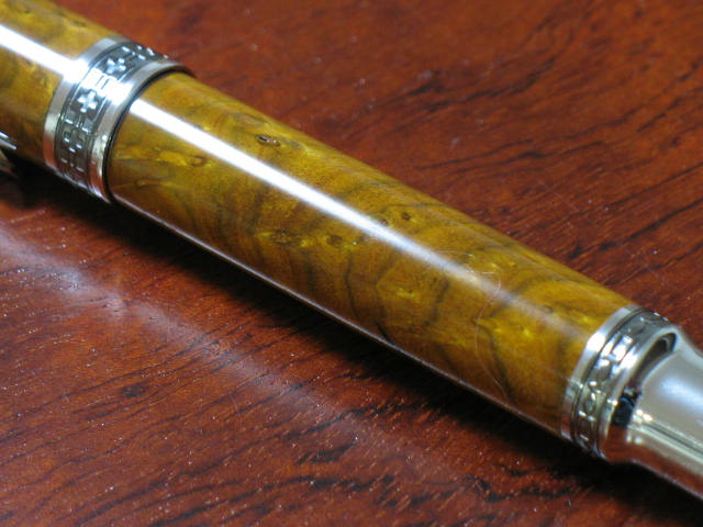 I have had this wood and kit for some time with the plans of one day making "My Pen". I finally think my finishing skills are good enough to do this wood and kit some justice. The scratch near the end cap was just a piece of lint.