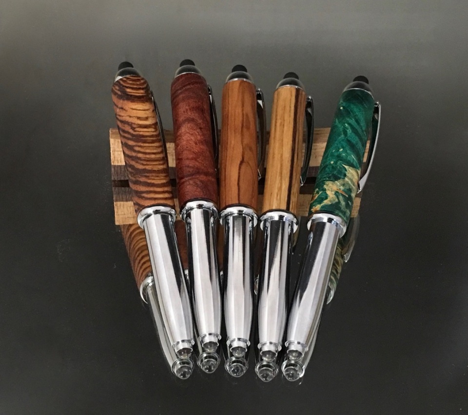 I purchased 5 of the LED/stylus/pen kits from Berea when they were on sale a while back and just got around to making them. Thought I'd see how they do at the pen show next week.