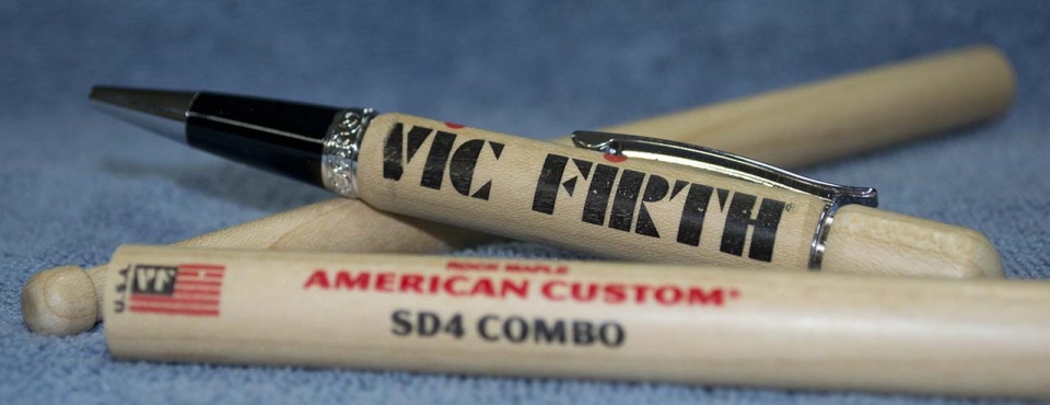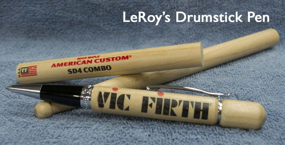 This is the third style of pen I've made with a drumstick, obviously a Vic Firth stick in this case. The kit is a Le Roi Elegant LB from smittyspenworks.com