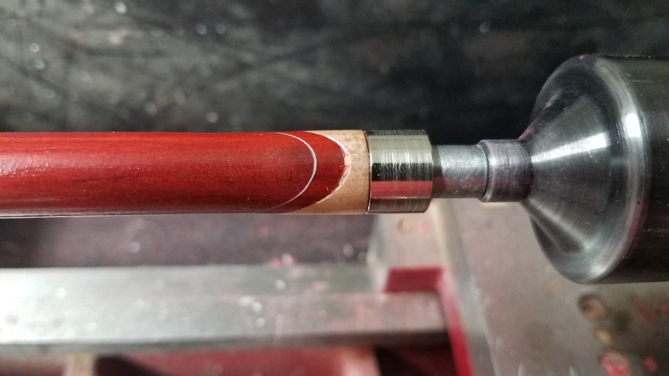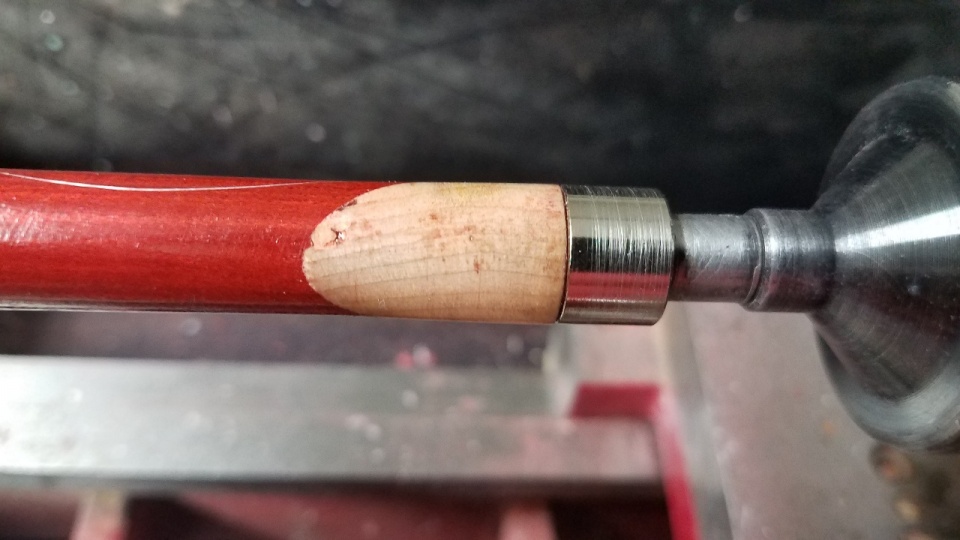 I was making this as a gift, and thought it would be neat to have a segment near the tip of curly maple. I cut it so that the end-grain would show, not realizing that I would get tearout near the thin transition sections.