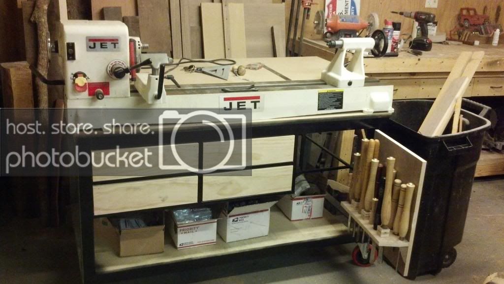 Finally got to bring my lathe home, it's been in dad's barn and I got to go every couple of weeks to turn but brought it home this week and got to mostly set up tonight. Hopefully will be able to turn a couple nights a week after the kids go to bed. No insulation in ceiling of my basement just the walls but set up is on the other side of the house so hopefully no waking the babies so the bride stays happy!