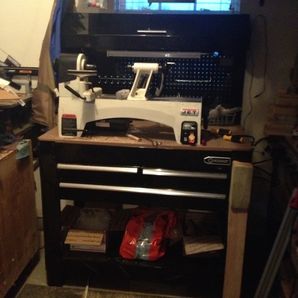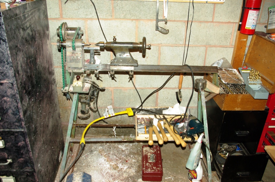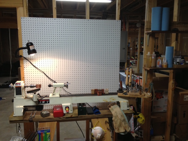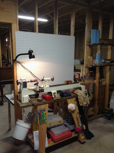 Finally got to bring my lathe home, it's been in dad's barn and I got to go every couple of weeks to turn but brought it home this week and got to mostly set up tonight. Hopefully will be able to turn a couple nights a week after the kids go to bed. No insulation in ceiling of my basement just the walls but set up is on the other side of the house so hopefully no waking the babies so the bride stays happy!