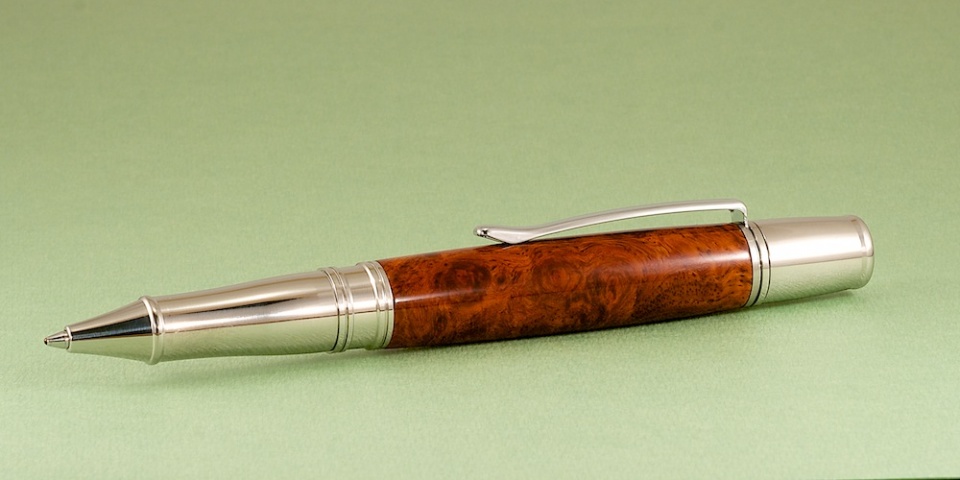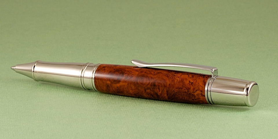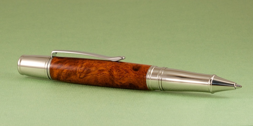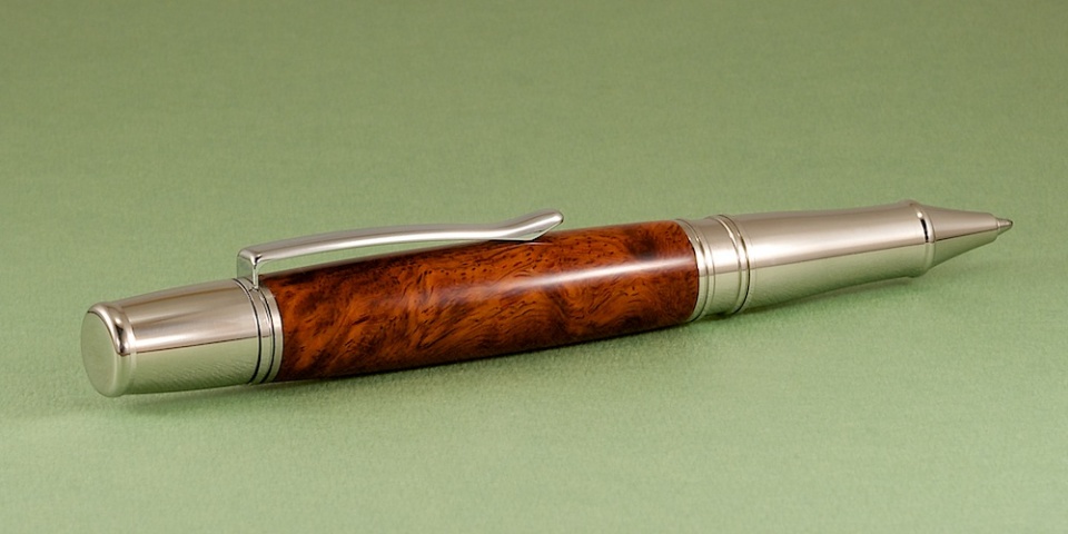 Amboyna Burl with a CA finish on a Liberty kit.
