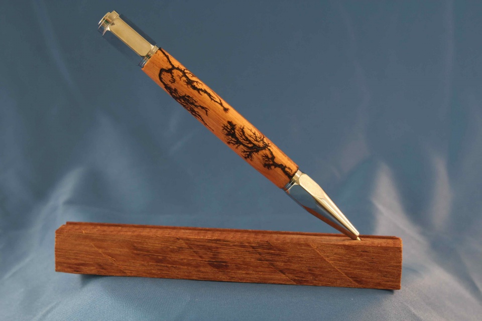 Very cool! I played with this a few months ago and basically used the same process you did.... turn, burn, then glue and finish. I used an old oil burner transformed and was not too happy with the results. Since then I have gathered up a couple of different neon sign transformers and some high voltage wire but have not put it all together yet. That is on my short list of to do's and I think you have just moved it up a notch or two. Thanks buddy!