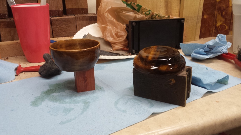 First attempt at a lidded box, currently using poly urethane to finish it. Had a little difficulty but I think its because my lathe is wobbly... gonna have to use my warranty from harbor freight to get it fixed...