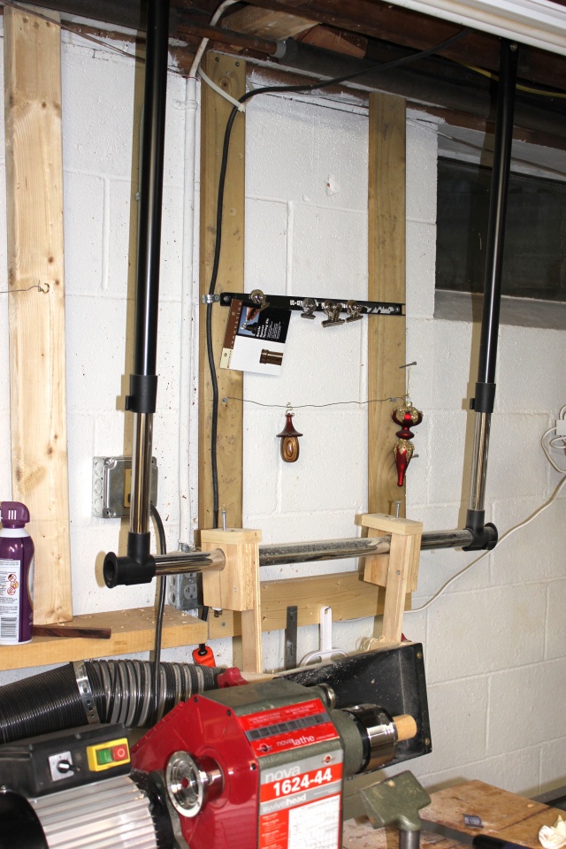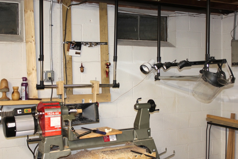 My lathe lighting is 2 clamp on lights mounted on my rafters.