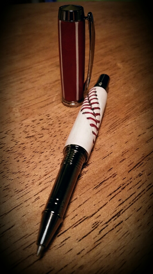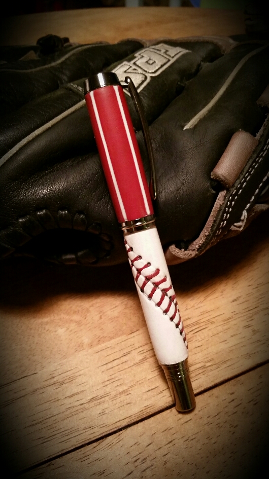 I was a little nervous when a good friend asked for a baseball pen. It has been quit some time since I have done anything with pen making or polymer. Between moving, a second child, and life pen making went to the back burner. Well I agreed to make the pen. It took about a week to unpack and locate all my supplies that have been stored for a couple years. I grabbed a glass of good bourbon, sat down at my desk, and it all came flooding back. I guess when you've made several hundred of these things the muscle memory and mind take over. Overall I was pretty happy and now I can't wait to make some more!!