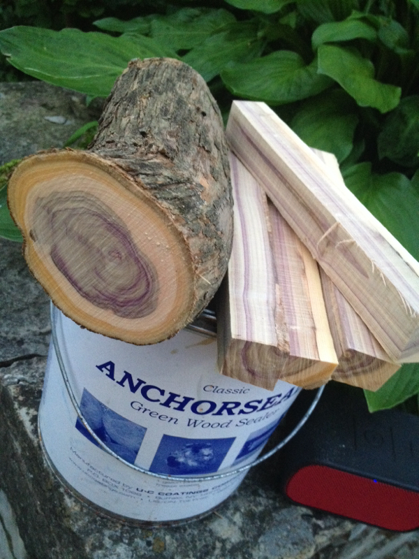 I have a couple lilac trees in my yard that I've turned pens from. It's a very nice easy turning wood with lots of character. One problem is it cracks a lot when drying so if you haven't sealed the ends yets, I would do so soon. It has a tendency to crack spirally around the limb, making it hard to get usable pieces. The purple will really stand out against that light sap wood. Good luck!