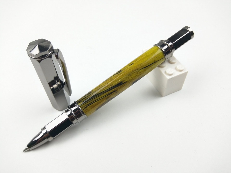 Magnetic Cap Gunmetal Vertex with Lime Green Spalted Tamarind Gatsby with black/chrome with "Molten Bronze"