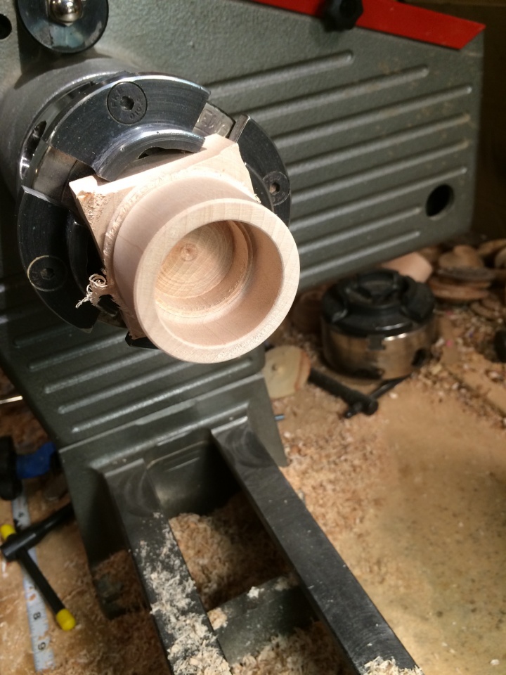 In preparation for teaching my sphere and egg class at Woodcraft, I needed a method of holding the spheres for the second orientation of turning. My plan was to use cup chucks/cup centers.