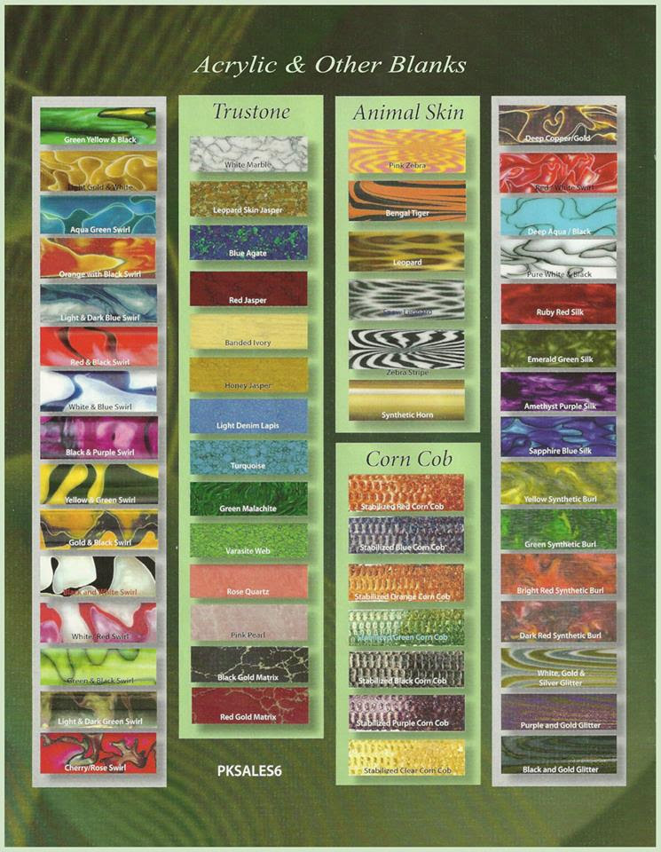 I have a potential customer that has asked for a 3 piece set in a green, yellow, and black acrylic. She sent a chart showing the blank, but I haven't been able to locate the supplier. The top left blank is the one I'm looking for. Can anyone identify this supplier for me?