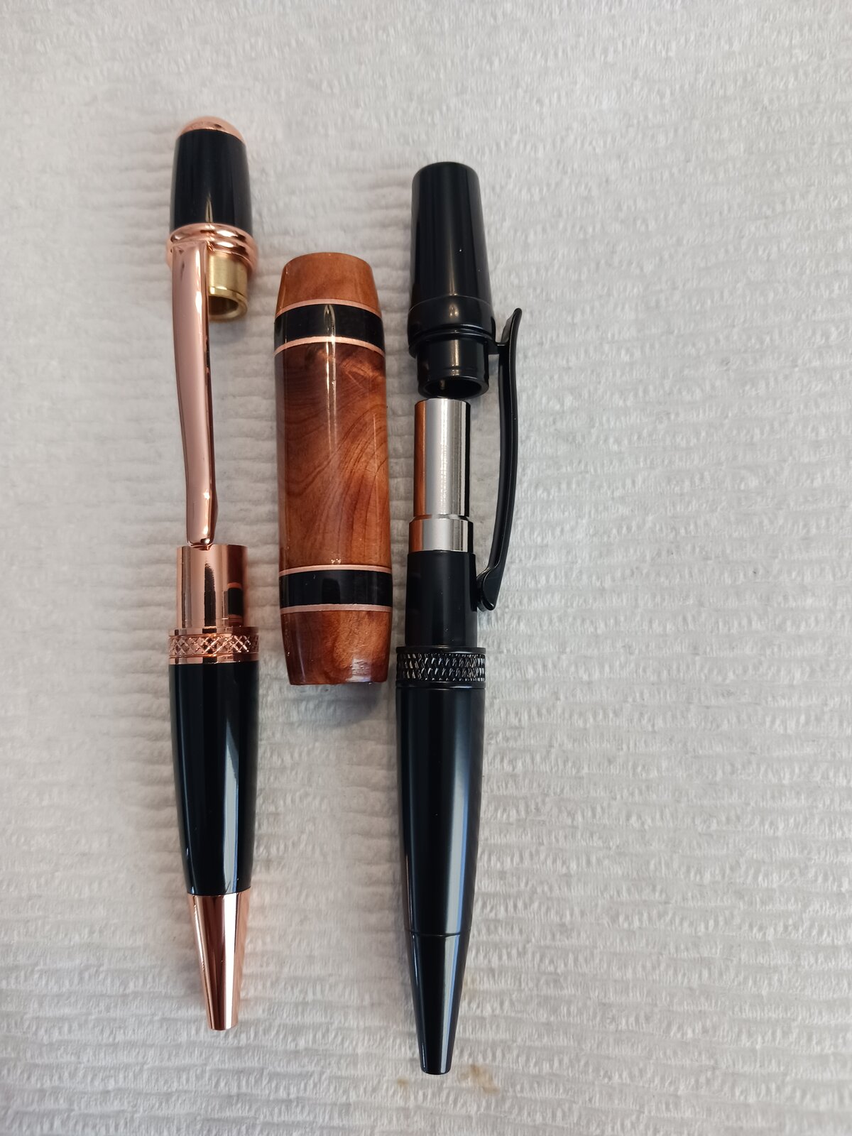 Yes, I did make the blank. Copper sheet from Hobby Lobby, 1/8th inch ebony and thyua burl.I agree with the others, and would favor the copper and black kit with the blank that you show.