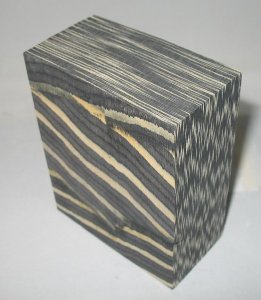 I got this piece in a batch of wood stuff that some fella was selling. Anybody know of a supplier who has it. Looks somewhat like Dymondwood, but the layers of contrasting woods are interlaced, not just laminated. Also, it is not dense like Dymondwood. The layers don't appear to be solid wood, but some sore of reconstituted wood. Thanks.