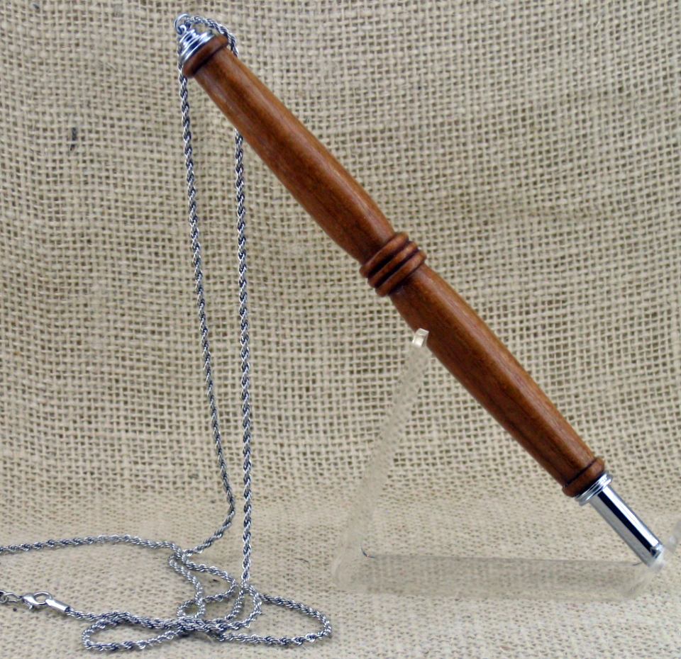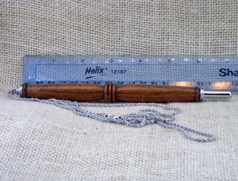 I had a customer request 2 seam ripper necklaces with 6 inch handles. The customer is always right, especially when they're a quick paying customer. This one is cherry with a large seam ripper head, the one I didn't get a picture of is walnut with a stiletto head. These are likely to be the longest ones I'll ever make. They were drilled from both ends toward the middle.