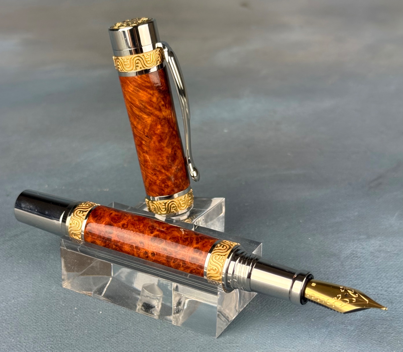 Ed at Exotic Blanks gives good advice! He suggested that I sell much more expensive pens along with the ones I already sell. The Lotus kit fits that bill nicely. These pens are robust in the hand and the metal components are first rate from Dayacom.