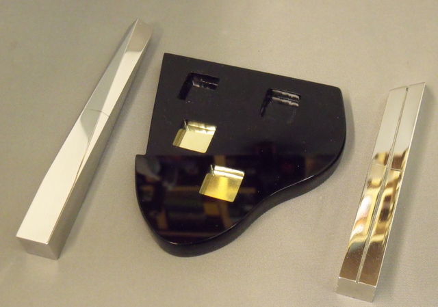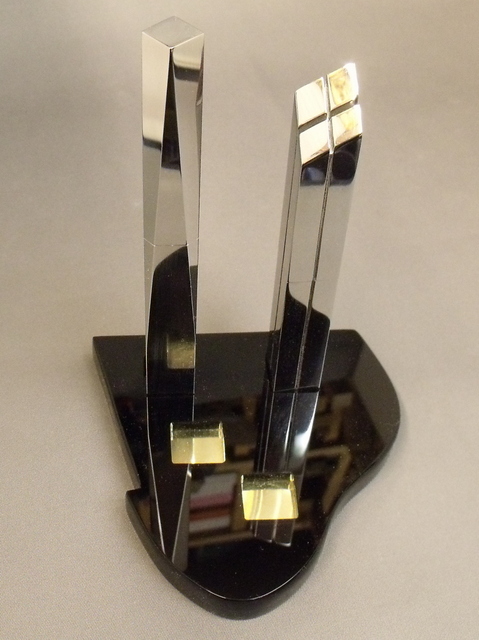 It has two recessed square holes to take the pens and two more squares with golden (brass shim ) bases to depict the Reflecting Absence memorials, which of course are the original WTC footprints.