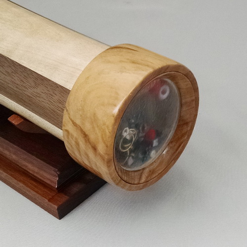 I wanted to try something a little different. So I attempted a couple of kaleidoscopes. The first one is a traditional scope with an wet cell object box. The second is a teleidoscope. I made stands for each one to sit on and look cool. This is just a frist try at it but I will persevere and make something that really jumps out.