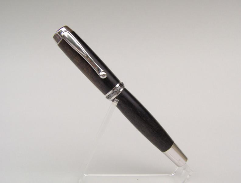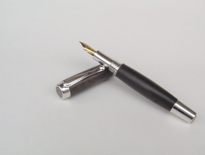 This is a Statesman Ltd Edition FP, Gaboon Ebony, Blk. Ti Hdw.. 1st Ebony i worked with, hard to drill but turns nice. i fit the hardware a little looser then normal, to try and limit the cracking, hope it works. Carl