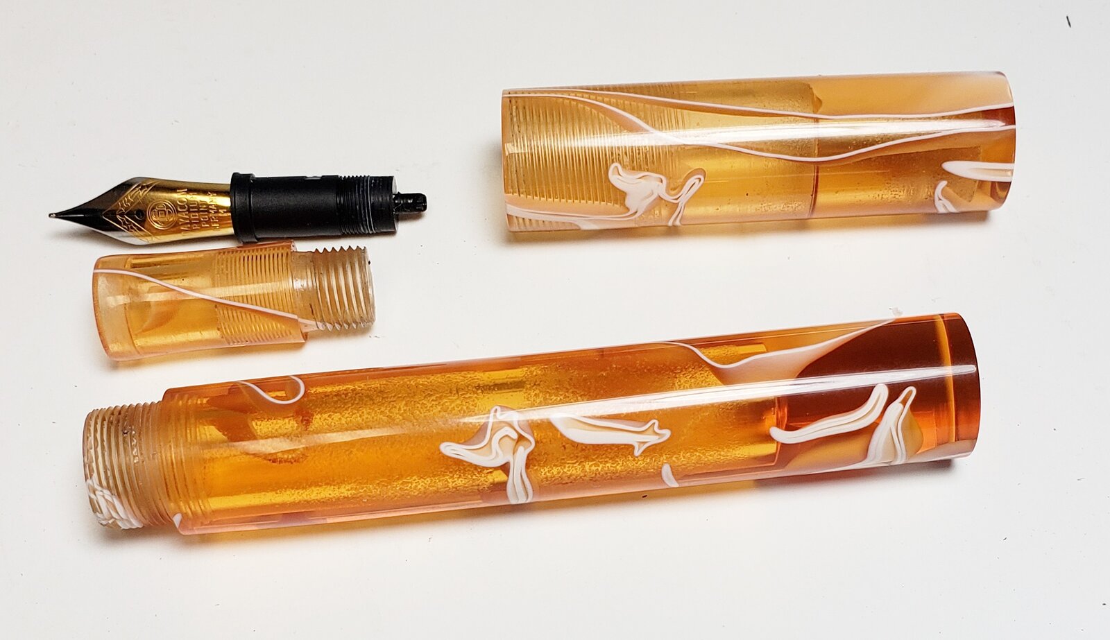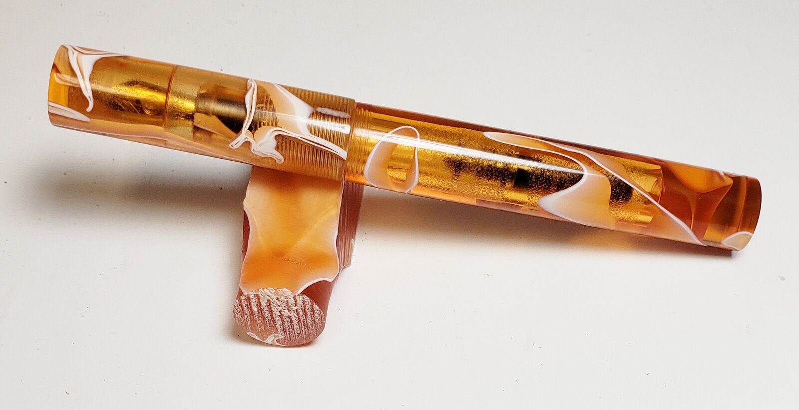 NICE colors and pen itself. The small about of white in the amber color intrigues me, and the right amount of transparency in the amber is perfect.