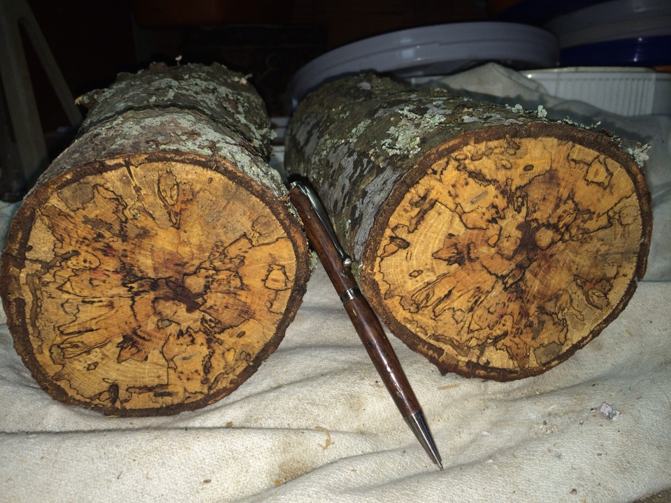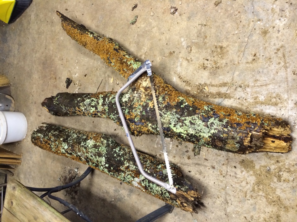 The wood will shrink and warp a bit as it dries, so cut your slabs slightly thicker than you need them. A good way to go is to take a log and cut a slab right down the middle that is about 20% of the log's overall thickness. The ratio doesn't need to be exact. This leaves one slab with the heart in the middle, and two pieces with a taco shaped cross section. Cut the heart out of the slab, which leaves you with two smaller slabs each with bark on one side. These are great for spindles or pen blanks. The other two pieces can be sawn into bowl blanks, more pen blanks, or anything else you might think of.