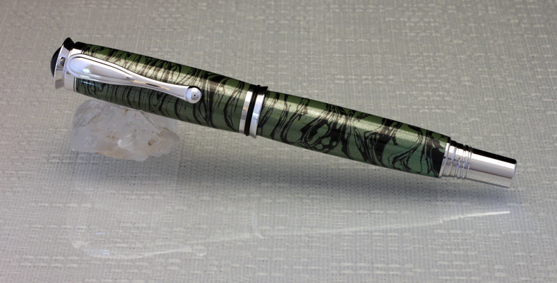 Here's a rollerball featuring the new M3 Titanium Mokume in green and black.