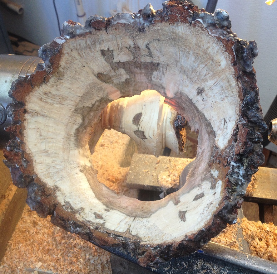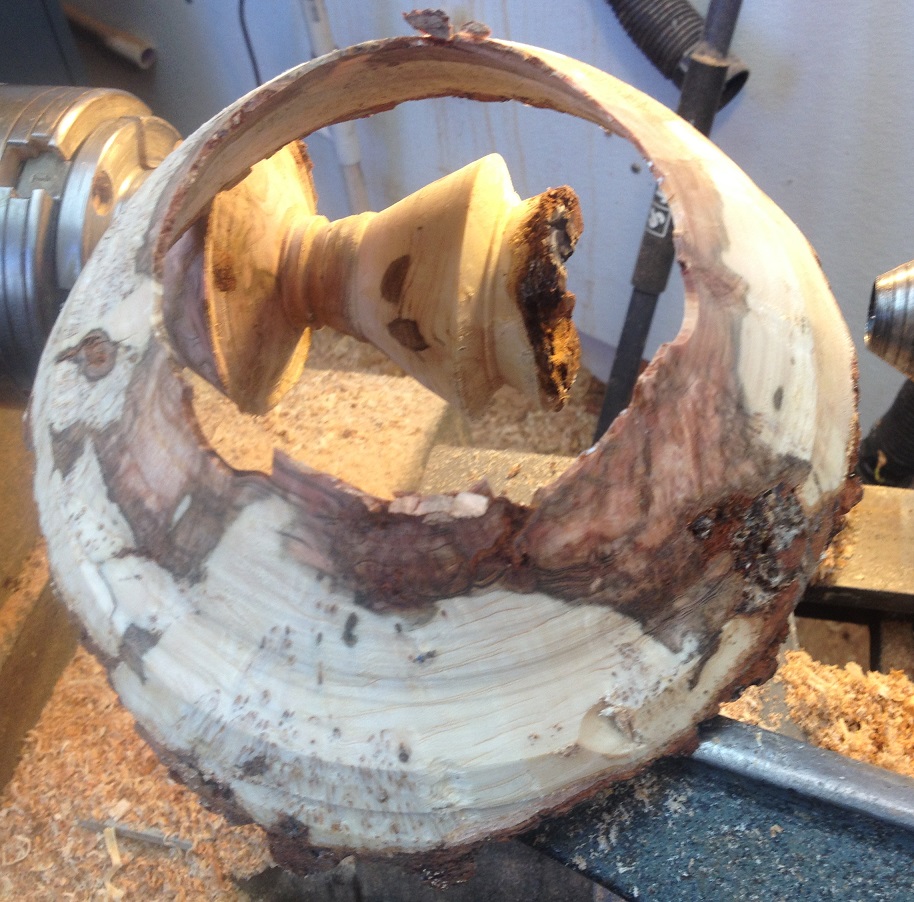 I had a beautiful piece of apple burl I purchased and was turning a bowl with a wide rim and a narrow base. I had the out side done, rough sanded and two coats of sanding sealer. While turning the inside I miscalculated the depth and cut through. I was mad at myself for doing something this stupid but I learned a valuable lesson. Stop and measure more often.