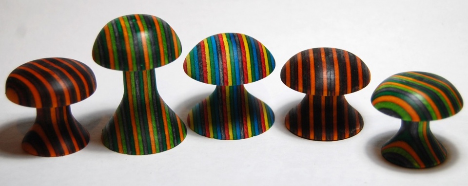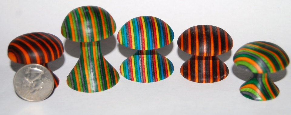 I spent the day yesterday with a turner that is 90% blind. We did alot of casting, turning, and talking. He opened my eyes as to turning with scraps. So today I spent a little bit in the shop and had fun turning these Magic Mushrooms. Just sanded with 220 and BLO finish. These were a hoot to make.