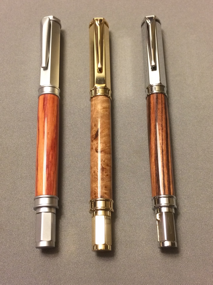 Ramping up production before my last few shows. We have satin in Tulip wood, gold in Big leaf maple burl, and chrome in Kingwood.