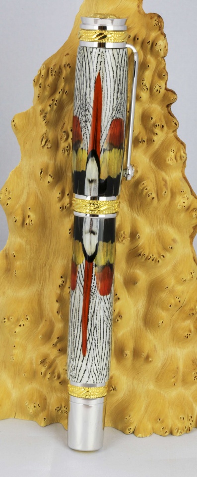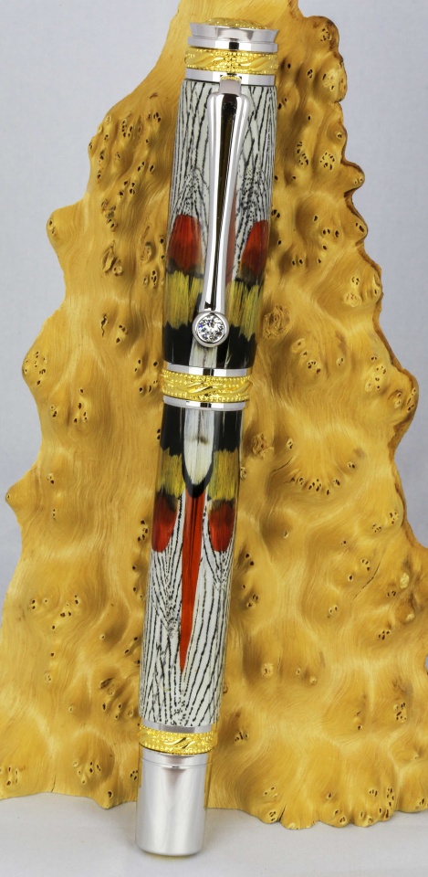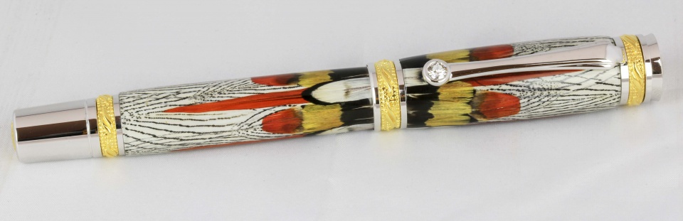 I have been so busy at work, and finally got around to making this pen. This is my first go with Marla's feathers from Classic Nib. Its a combination of Lady Amhurst and Silver Pheasant. I love it. It is very well made and no issues turning or finishing. My registrar who bought this, was so excited and loves it!! What does everyone think? C & C absolutely welcome.