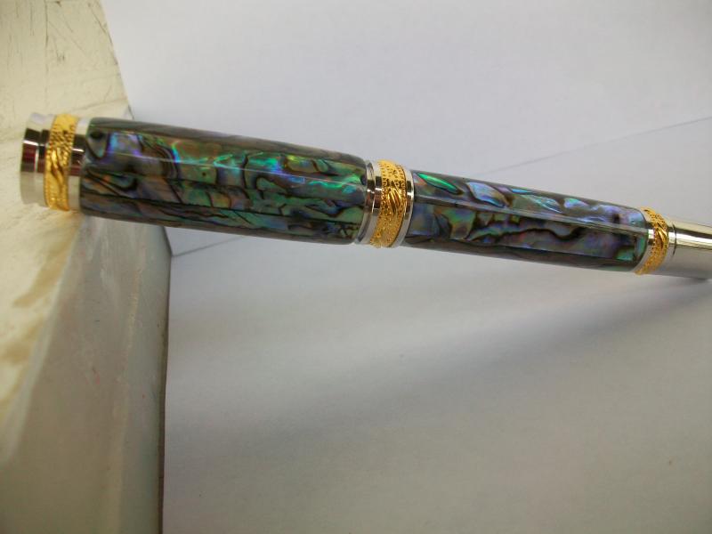 I like the Abalone, it looks beautiful but not with the 22k gold. The colors are off for me. The Rhodium/Black ti would be a better match in my opinion. Also, is the center not pushed all the way together? I'm seeing space, but it may be the angle in the pic.