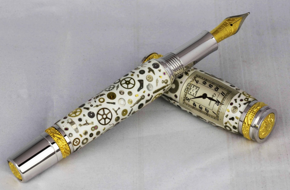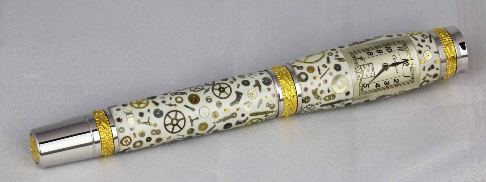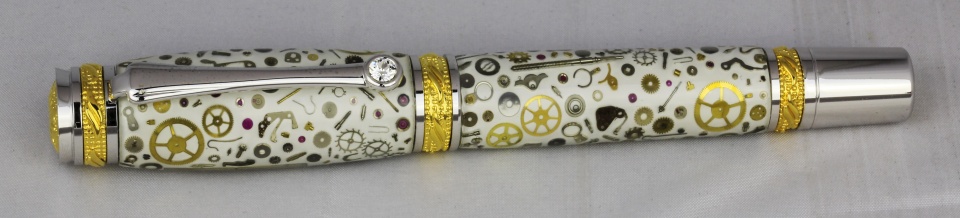 I made this Majestic fountain pen, which is a Watch Parts Pen made by Marla. I really like her work. This is an exceptional color, and I really liked working with it. I was wondering if anyone could tell me if they had any views on how the clip should be placed? I placed it opposite to the clock face. What is the general consensus on this? C & C welcome as always