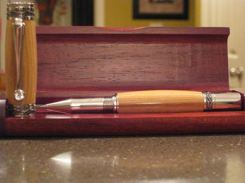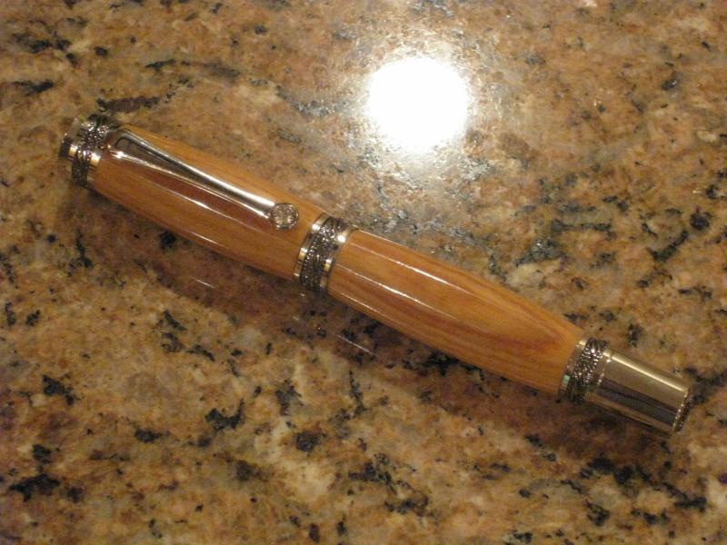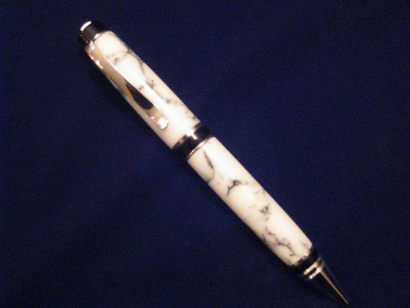 These are my two most recent pens. The Majestic is made from Olive Wood and has a coating of CA glue. The Big Ben Cigar Pen is rhodium plated and the material used was Tru Stone Marble. Tell me what you think of them. This is still my first half year of pen making and I am still pretty new at this so criticism is always a good thing.
