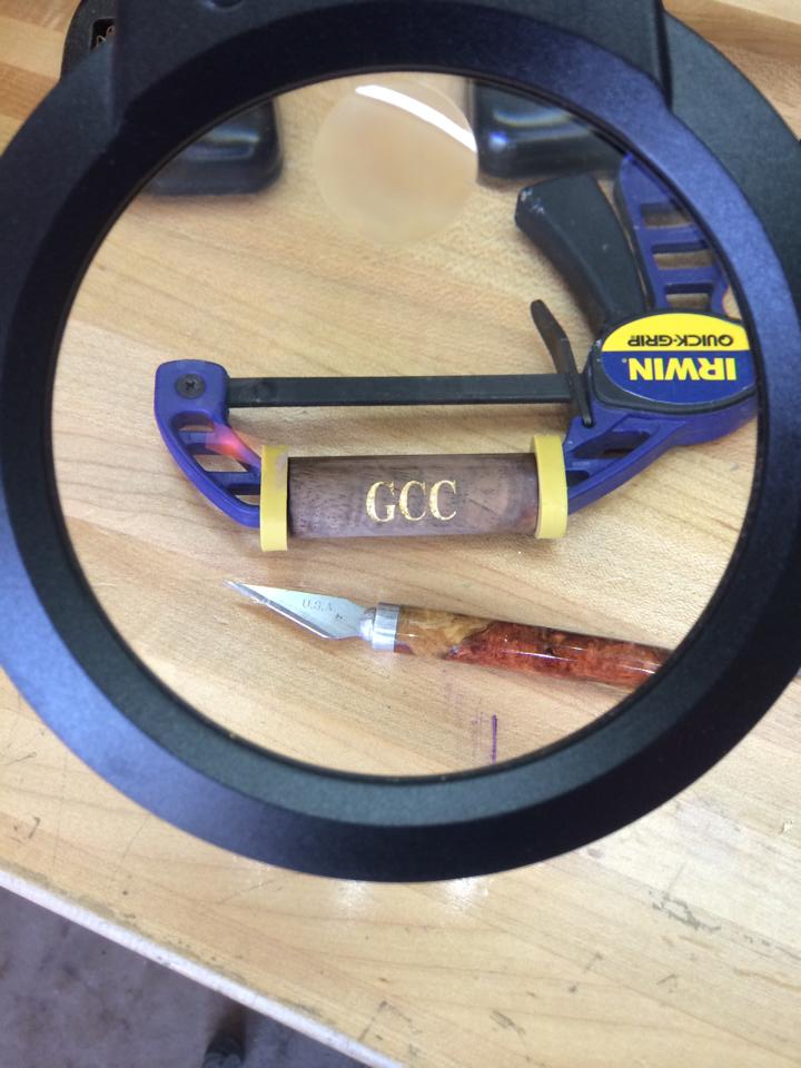 I decided to laser engrave the initials and gold leaf them. When pair with the gold in the kit hardware it worked out well.