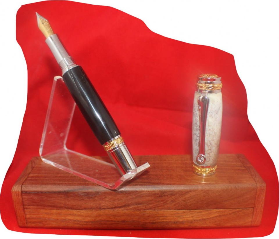 Majestic Pen dressed in Buffalo Horn and Whitetail Antler Cap with handmade mesquite pen box.:hammer: