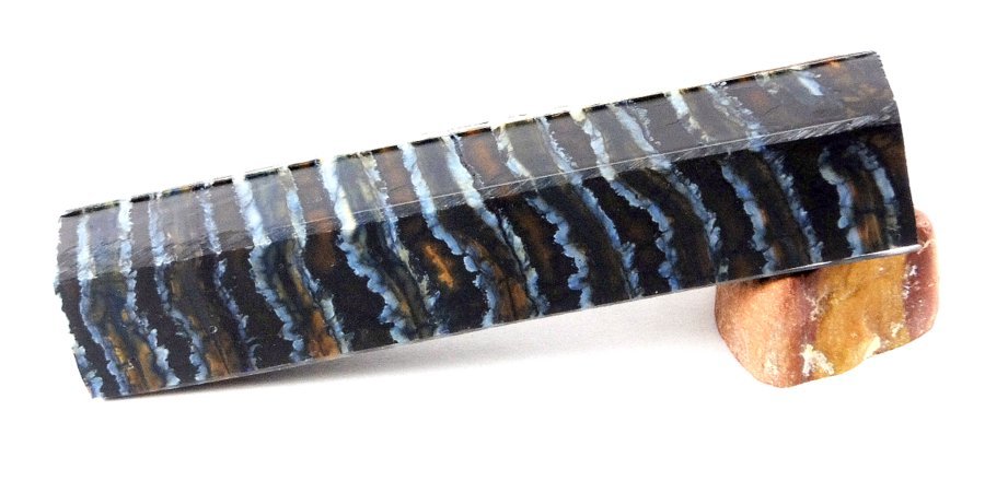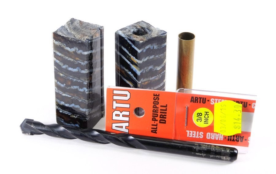 Tanner my only experience has been with the one piece cast,it came from Russia via Canada,collected in Cobalt soil hence the colour. I also cut the blank with a small three wheel bandsaw with a fine metal blade. Now drilling I used this drill (wunderkinder,drills files etc) available in your country or likened other drills to near size then a normal steel drill. The bands of clear you see are pure silica so go slow when you hit these. I turned over 4-6 hours on the lathe using a 4 faced carborundum cutter. When I had blunted the four cut faces I removed from the handle ,placed face down on a diamond file, a mate used this method but 20 new cutters,my Scottish Ancestors cringed so I sharpened mine. Any more info that might be of interest PM me mate.